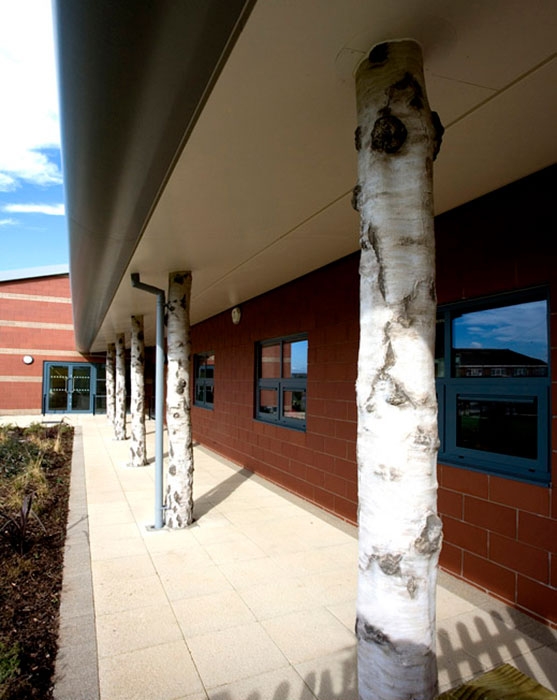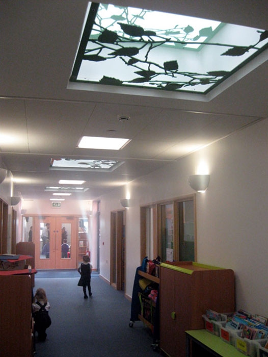 Boudica Colonnade, Boudica Skylights and Boudica Glazing 2007-09 Three integrated artworks for Queen Boudica Primary School in Colchester. Colonnade columns are ceramic casts in coade stone with a steel core. |