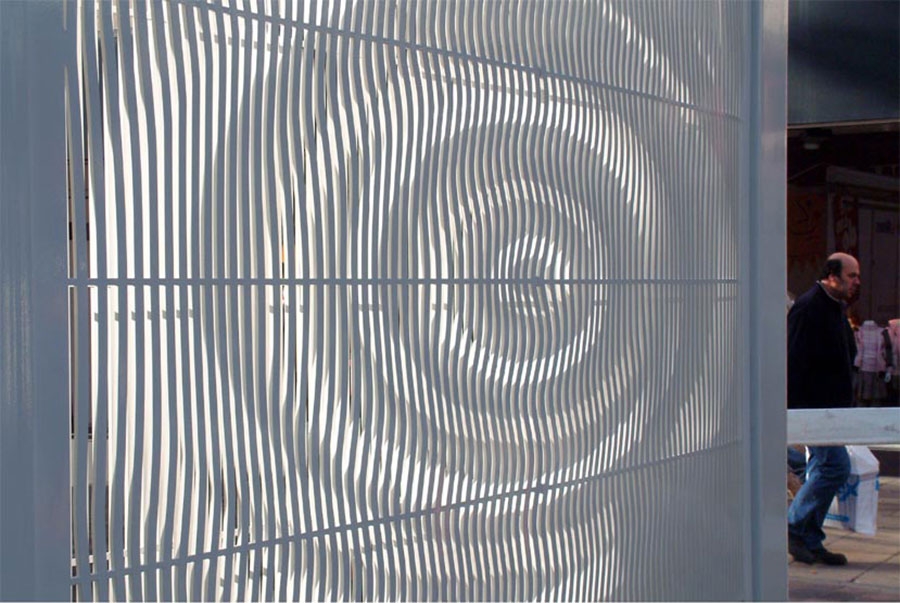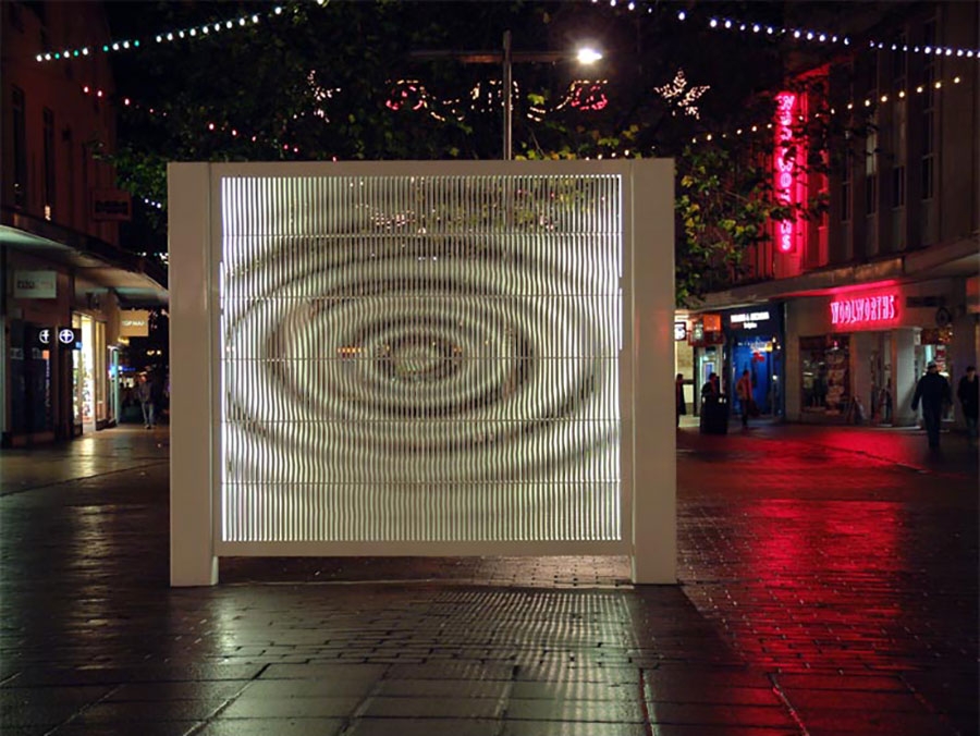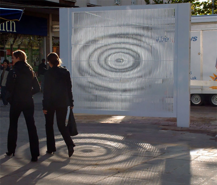 a moving image as the viewer moves in front of the structure.