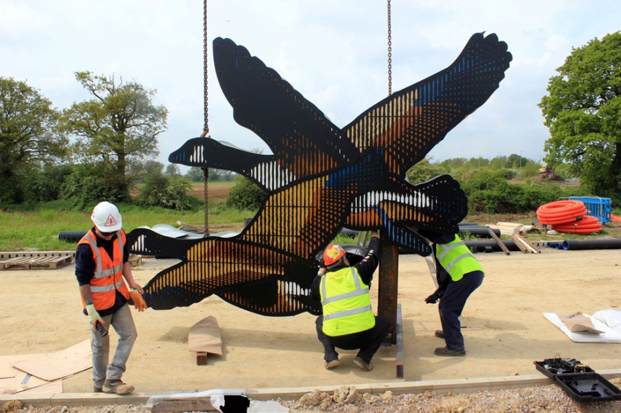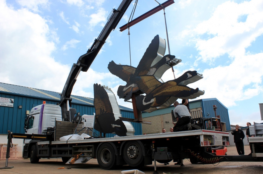 9m high x 14m across x 0.75m deep. Commissioned through RKL Consultants and the Design Council.