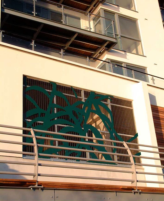 Tiger Reeds TIGER REEDS Tiger Reeds 2008 Grills depicting fresh water reeds which now can grow inCardiff Bay, following the construction of the barage. Commissioned by Westmark and managed by Safle. Back